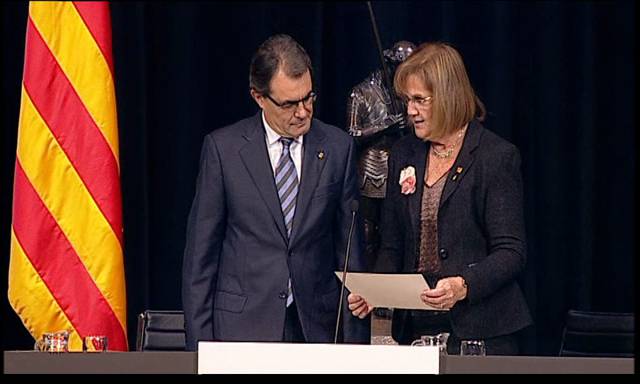 Tanto el discurso del presidente como el protocolo y la escenografía del acto transmitieron la imagen de que la “transición” nacional catalana está en marcha. Mas no dejó de defender el derecho a la autodeterminación. Los servicios de protocolo de la Generalitat no sentaron esta vez al representante del Gobierno [Montoro] en la mesa presidencial como en otras ocasiones, sino que le situaron en la primera fila de autoridades, junto a los expresidentes Jordi Pujol y José Montilla. En anteriores tomas de posesión el representante del Gobierno se sentaba en la mesa presidencial, junto al presidente del Parlamento y al presidente de la Generalitat.
